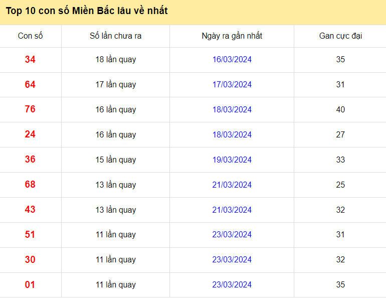Cặp lô | Số Lượng Cầu Báo | Khả Năng Về |
